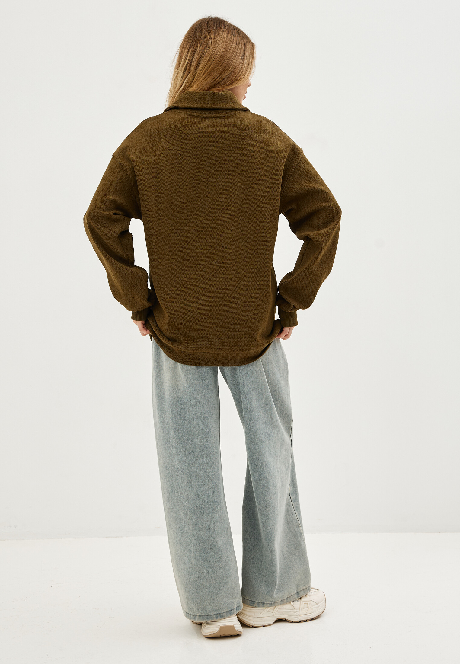 Трикотаж-футер 3-х нитка с эффектом вязаного свитера, с петлей в виде рисунка "елочка".